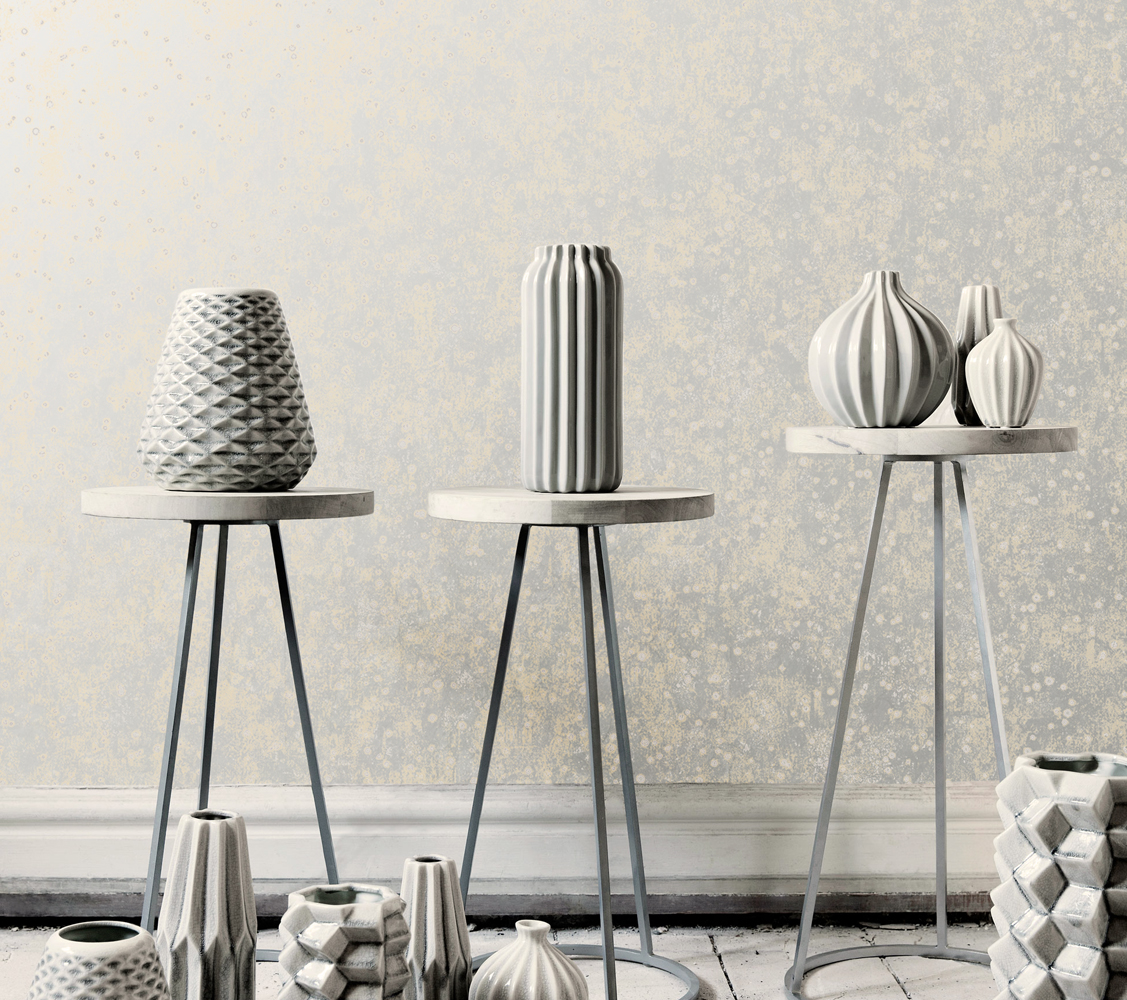 Ricorda il luminosità del metallo, la ruvidità della pietra grezza e la geometria del caleidoscopio, evidenziando gli spazi e creando nuove superfici.